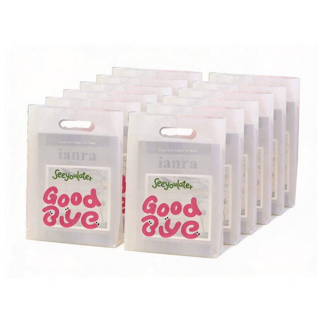 Upgrade your packaging with this stylish and durable four-finger flat plastic gift bag, designed for modern retail and boutique presentation. Featuring a trendy frosted finish and playful "Seeyoulater Good Bye" print, this bag adds a fun yet premium touch to your products.