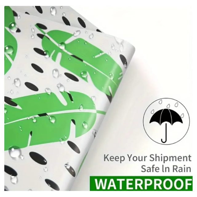 100 Polymailers Packaging 25x33cm Self-Adhesive Gift Bag Green Leaf Design