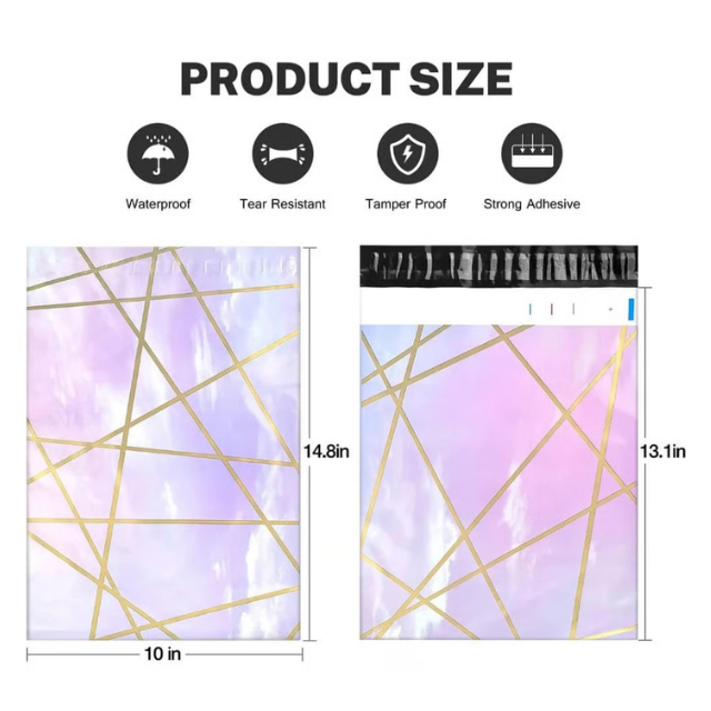 100 Polymailers Packaging 25x33cm Self-Adhesive Gift Bag Holographic Marble