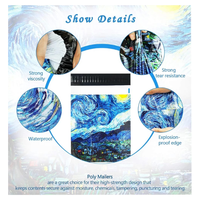 100 Polymailers Packaging 25x33cm Self-Adhesive Gift Bag Van Gogh Art Print